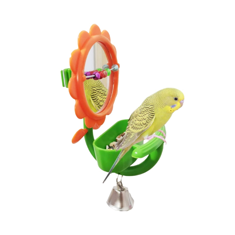 Juguete Espejo Girasol con Comedero y Campana para Pájaros